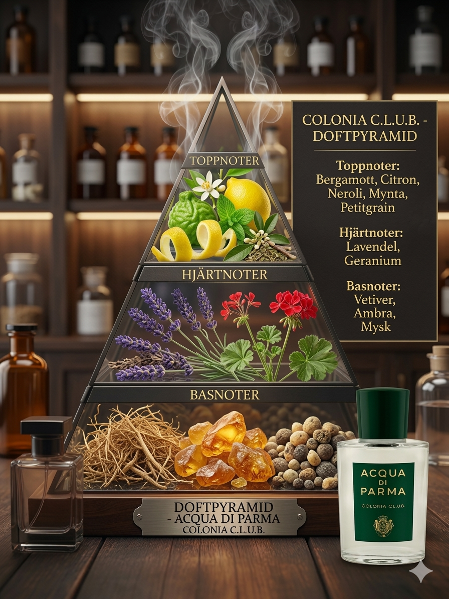 Colonia Club är en frisk, energisk och elegant doft som fångar känslan av klassisk italiensk livsstil. Skapad av det anrika parfymhuset Aqua di Parma kombinerar denna komposition livliga citrusnoter med aromatiska örter och mjuka tränoter. Resultatet är en sofistikerad men avslappnad doft som utstrålar renhet, stil och naturlig elegans.