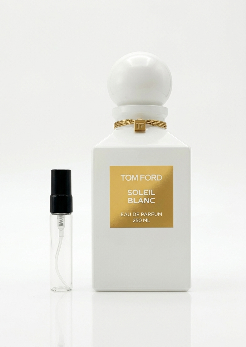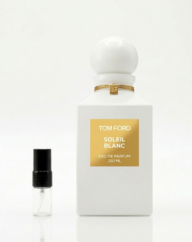 Tom Ford är mästaren på att sälja en livsstil, och Soleil Blanc är känd för att dofta som "privata öar och lyx". Den är berömd för sin unika användning av pistage och kardemumma i öppningen, vilket ger den en sofistikerad kant som skiljer den från vanliga kokosdofter. Den hyllas för sin förmåga att omedelbart transportera bäraren till en plats där solen aldrig går ner.